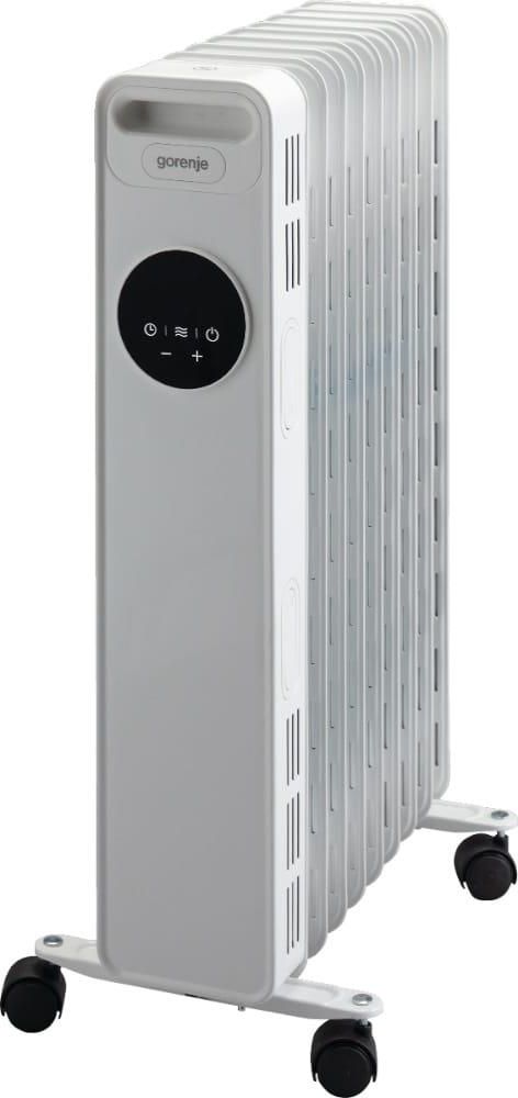Grzejnik wolnostojący Gorenje  OR2000M Oil radiator Ilość kolanek grzewczych: 9 szt. Moc grzewcza:  2000 W Szerokość: 640 mm Wysokość: 408 mm Głębokość: 280 mm Waga urządzenia: 9,5 kg FUNKCJA ECO Optymalnie warunki Funkcja ECO automatycznie utrzymuje optymalne parametry pracy przy stałym poziomie temperatury 22 stopni C.   Technologia ogrzewania 3D Dostarcza ciepło we wszystkich kierunkach Dzięki  mocy 2000 W  i  opatentowanej specjalnej konstrukcji 18 otworów w każdym żebrze , ten  wypełniony olejem  grzejnik dostarczy  ciepło w ciągu kilku sekund . Idealnie się sprawdza przy ogrzewaniu  pomieszczeń do 15m 2 . Ochrona przed przewróceniem Automatyczne wyłączanie dla dodatkowego bezpieczeństwa Jeśli grzejnik się przewróci, nie musisz się martwić. Wyłącznik bezpieczeństwa zapewni wyłączenie urządzenia w sytuacji awaryjnej. Wyświetlacz LED Sterowanie dotykowe Interaktywny dotykowy panel sterowania w kształcie okręgu umożliwia proste ustawianie precyzyjnej temperatury i czasu jednym dotknięciem. Ustawienie temperatury mieści się w zakresie od 5 do 35°C. Zdalne sterowanie Łatwa kontrola Ten nowoczesny grzejnik o smukłej konstrukcji i eleganckim panelu sterowania może być sterowany również z daleka za pomocą poręcznego pilota. Przechowywanie przewodu zasilającego Elegancki i wygodny Bez plątania się i ciągnącego się przewodu podczas poruszania się i umieszczania grzejnika w pomieszczeniu, które chcesz ogrzać. Przydaje się również podczas przechowywania grzejnika w czasie lata.