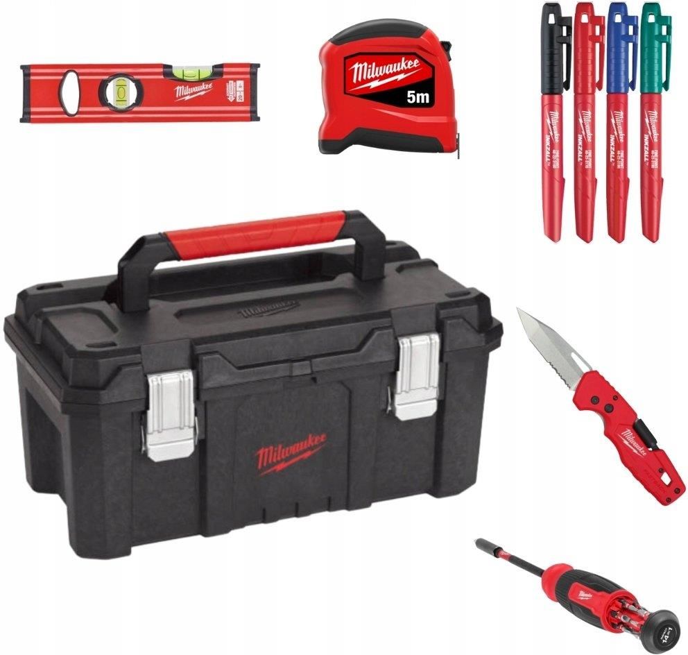Milwaukee 4932502134 Zestaw Świąteczny walizka CHARAKTERYSTYKA PRODUKTU : Starannie dobrany komplet narzędzi ręcznych, zamknięty w wytrzymałej walizce, to gwarancja satysfakcji i użyteczności na lata. Taśma miernicza 5m SLIM (GEN 2) Najbardziej kompaktowa konstrukcja – idealna do pomiarów w ograniczonych przestrzeniach. Ergonomiczna konstrukcja zapewniająca większą kontrolę i lepszy chwyt. Najwyższa trwałość dzięki obudowie odpornej na uderzenia. Nowy klips mocujący wykonany z drutu, zmniejszający ryzyko uszkodzenia materiału. Otwór na smycz zapewniający bezpieczne mocowanie. Zestaw 4 markerów ze standardową końcówką Można go używać do betonu, drewna, metalu, sklejki, płyt OSB, tworzyw sztucznych Marker pisze nadal po ponad 72 godzinach od zdjęcia nasadki Akrylowe ostrze jest idealne do chropowatych powierzchni, np. OSB czy betonu Krótki czas wysychania – zredukowane rozmazywanie się oznaczeń na PCW, powierzchniach metalowych Cienka konstrukcja umożliwia stosowanie w ciasnych, trudno dostępnych miejscach Poziomica Slim 20 cm Precyzyjnie szlifowana powierzchnia pomiarowa gwarantuje maksymalną dokładność (w poziomicach do 120 cm) Mocny otwór do przechowywania na wieszaku Specjalne nakładki antypoślizgowe, które zapobiegają ślizganiu się poziomicy na ścianie 2 mocne libelle akrylowe odporne na upadki i promieniowanie UV Składany nożyk 5 w 1 FASTBACK™ Blokada ostrza w pozycji otwartej. Mechanizm umożliwiający łatwe otwieranie jedną ręką. Otwieracz do butelek. Otwór na smycz. Możliwość stosowania w przypadku pracy na wysokościach. Częściowo ząbkowane ostrze zapewnia wszechstronność pozwalając zarówno na przekłuwanie jak i rozdzieranie materiału. Zawiera składany uchwyt do bitów sześciokątnych ¼” wyposażony w bit podwójny PH2 i SL. Multi-wkrętak 14 w 1 z bitami udarowymi Shockwave™ Zestaw składa się z aż 13 bitów o różnych rodzajach i wymiarach, aby dopasować je do Twoich potrzeb Wkrętak posiada wygodny schowek w rękojeści, który utrzymuje końcówki w porządku i umożliwia ich szybką wymianę. Ergonomiczny uchwyt z trwałą powłoką, zapewnia wygodę pracy nawet przy długich godzinach. Rodzaje bitów: HEX 3, 4, 5 mm, PH1, PH2, PZ1, PZ2, T10, T15, T20, T25, płaskie 5,5 mm i 6,5 mm. Wyjmowany uchwyt na bity oraz zgodność z mocowaniem ¼″ czynią ten wkrętak doskonałym wyborem zarówno do pracy w trudno dostępnych miejscach, jak i do używania z elektronarzędziami. WYPOSAŻENIE : Walizka TOOLBOX 21″ Taśma miernicza 5m SLIM (GEN 2) Poziomica Slim 20 cm Zestaw 4 markerów ze standardową końcówką Składany nożyk 5 w 1 FASTBACK™ Multi-wkrętak 14 w 1 z bitami udarowymi Shockwave