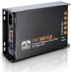 Dzięki stałemu natężeniu 250 mA na wyjście kompaktowy zasilacz sieciowy PWT 05 MK2 firmy Palmer nadaje się do praktycznie wszystkich pedalboardów. Aby zapewnić pedałom efektów zasilanie bez zakłóceń, pięć gniazd wtykowych z ujemnymi stykami wewnętrz nymi zostało od siebie odizolowanych, dzięki czemu wyeliminowano pętle uziemienia i związane z nimi przydźwięki. Urządzenie PWT 05 MK2 posiada zabezpieczenie przeciwprzeciążeniowe i dostarczane jest z następującymi kablami połączeniowymi: 25 cm, 50 cm i dwa kable typu Y. Pierwszy kabel typu Y (z czarną wtyczką) służy do połączenia dwóch wyjść 9 V w celu podwoje nia natężenia do wartości aż 500 mA, natomiast drugi kabel typu Y (z białą wtyczką) – do połączenia dwóch wyjść 9 V w celu podwojenia napięcia do 18 V. Ponadto w zestawie znajduje się rozdzielacz do jednoczesnego podłączenia pięciu pedałów do jednego wyjścia, o ile ich łączny pobór prądu nie przekracza 250 mA. Nadzwyczaj stabilna obudowa urządzenia Palmer PWT 05 MK2 daje możliwość stałego montażu i odciążenia kabli. Co więcej, wyposażono ją w gniazdo sieciowe IEC oraz przełącznik wyboru napięcia , co sprawia, że urządzenie może pracować na całym świecie. Specyfikacja Palmer PWT05MKII : Rodzaj produktu - Zasilacze Przyłącze zasilania sieciowego - gniazdo sieciowe IEC Napięcie wejściowe - 230 V Liczba wyjść - 5 Złącza wyjściowe - 2,1 x 5,5 mm Napięcie wyjściowe - 9 V Maks. prąd wyjściowy - 250 mA na wyjście A Wyjścia izolowane - tak Biegunowość - Bolec wewnętrzny ujemny Długość przewodu zasilającego - 25 - 50 cm Wskaźniki - Power, Overload Elementy obsługi - Włącznik sieciowy (On/Off), przełącznik napięcia Szerokość - 105 mm Głębokość - 140 mm Wysokość - 45 mm Waga - 1,5 kg