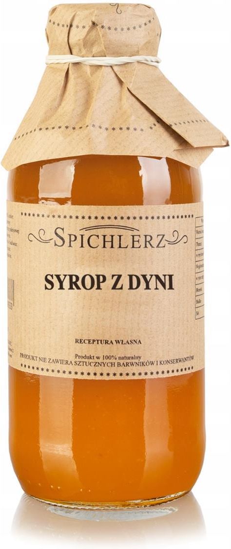 Syrop z dyni ~ 330 ml ~ Syrop malinowy Tego rodzaju produkt jest uniwersalny i po prostu pyszny – smakuje dorosłym i dzieciom. Różnorodne możliwości wykorzystania syropu z malin Syrop malinowy daje naprawdę wiele możliwości z swojego wykorzystania. Podstawowym jest dodatek do wody. To idealne połączenie niezależnie od pory roku. Sprawdzi się latem, jako napój chłodzący, ale także zimą – by odpowiednio się nawodnić. Drugim, również powszechnie znanym sposobem na wykorzystanie syropu malinowego, jest dodawanie go do herbaty. Robi się tak nie tylko ze względu na niepowtarzalny smak, ale również z powodu właściwości tego syropu. Ma on działanie przeciwgorączkowe, ponieważ zawiera olejki eteryczne o działaniu rozgrzewającym. Wzmacnia również organizm, ponieważ w składzie ma żelazo i miedź pozytywnie wpływające na stan krwi. Nic więc dziwnego, że syrop z malin zaleca się wykorzystywać w przypadku przeziębienia i grypy, jako naturalne remedium. Jak przygotować - syrop malinowy? Przepis na niego nie jest trudny, ale jednak przygotowanie go jest dość pracochłonne. Maliny należy gotować z odrobiną cukru. Kiedy owoce się już porządnie rozpadną, należy je przecisnąć przez gęste sitko do momentu, kiedy pozostała pulpa będzie niemal sucha. Następnie do soku należy dodać cukier oraz sok z cytryny i ponownie zagotować. Po przetarciu brzegów szklanych naczyń i ich mocnym zakręceniu, można je odwrócić do góry dnem. Powinny się zawekować, co umożliwia ich dłuższe przechowywanie. Tak przygotowany syrop owocowy jest z pewnością pyszny i uniwersalny. Wymaga jednak między innymi użycia owoców o znanym pochodzeniu, najlepiej własnych lub z ekologicznych plantacji, aby mieć pewność, że nie były one pryskane. Jeżeli nie masz na to czasu, rozwiązaniem jest sięgnięcie po gotowy syrop malinowy. Nadaje się do spożycia od razu po otwarciu.Na przeziębienie najlepszy jest syrop malinowy.Przepis na dobry smak masz na wyciągnięcie ręki, dlatego koniecznie uzupełnij nim swoją spiżarnię. Twój organizm będzie za to wdzięczny. Skład: Sok z malin: 40%, woda, cukier. Wartości odżywcze na 100g produktu: tłuszcze - 0,09 g, w tym kwasy tłuszczowe nasycone 0g, węglowodany 62g, w tym cukry 62 g, błonnik 2 g, białko - 0,3 g, sól - 0,02g Wartości energetyczne na 100 g : 1082 kJ / 255,4 kcal Produkt pasteryzowany. Przechowywać w temperaturze pokojowej i zacienionym miejscu, a po otwarciu w lodówce. Produkt:100% naturalny. Produkt Polski Produkt przyjazny dla wegan