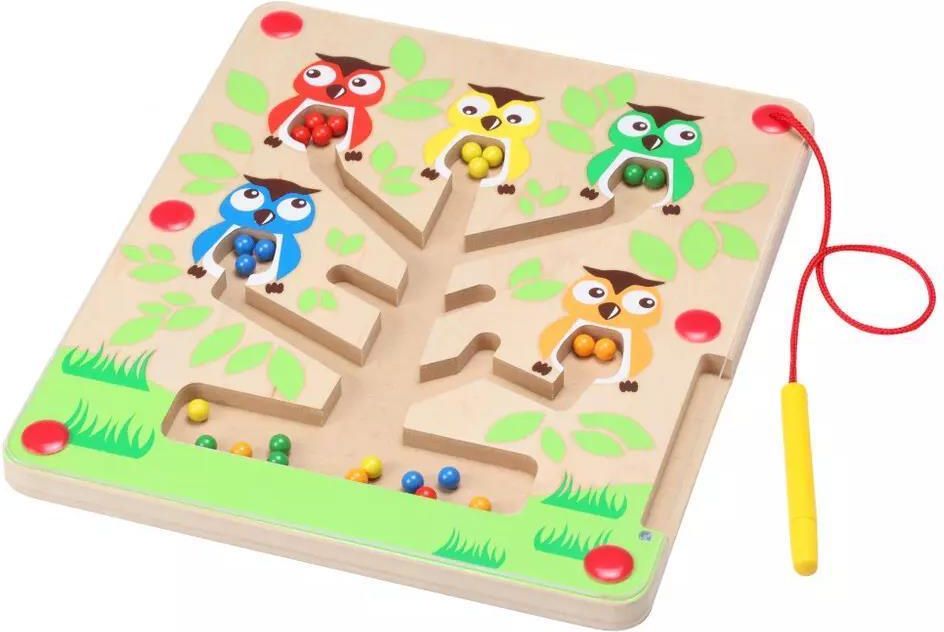 Dla kogo? CHILD FRIEND - Królestwo sów, nauka sortowania to magnetyczna gra, która została stworzona z myślą o dzieciach powyżej 2 roku życia. Jest to niezwykłe narzędzie edukacyjne zaprojektowane w taki sposób, aby przyciągnąć uwagę maluchów, jednocześnie umożliwiając im rozwijanie szeregu kluczowych umiejętności. Dzieci w wieku przedszkolnym są w fazie intensywnego rozwoju poznawczego i sensorycznego. Właśnie dlatego Królestwo sów jest idealnym towarzyszem ich odkryć. W prosty i zabawny sposób zachęca maluchy do nauki rozpoznawania kolorów oraz doskonalenia zdolności motorycznych poprzez interakcję z magnetycznym piórem i kulkami. Połączenie kolorowych kulek i uroczych sów przyciąga uwagę dzieci, pobudzając ich ciekawość i chęć eksploracji. Przedszkolaki znajdą w Królestwie sów wspaniałe narzędzie do rozwijania swoich umiejętności w obszarze rozróżniania kolorów oraz doskonalenia zdolności koncentracji i precyzji. Ta innowacyjna gra nie tylko dostarcza rozrywki, ale również stwarza dogodne warunki do nauki poprzez zabawę. To doskonały sposób na wprowadzenie elementów edukacyjnych do codziennego życia dziecka, kształtujący przy tym ciekawość i pasję do poznawania świata wokół siebie. [ikony-produktu-opisy] Dlaczego warto? Rozwój motoryki małej Królestwo sów to gra, która skupia się na rozwijaniu precyzyjnych ruchów rąk. Dzieci wykorzystują magnetyczne pióro do przyporządkowywania kulek do sów, co doskonali ich zdolności manualne. Rozwój percepcji wzrokowej i koordynacji wzrokowo-ruchowej Gra wymaga określenia kolorów kulek i sówek oraz odpowiedniego dopasowania ich ze sobą. Dzięki temu dzieci doskonalą percepcję wzrokową oraz koordynację wzrokowo-ruchową, co ma istotne znaczenie dla ich ogólnego rozwoju. Nauka kolorów Królestwo sów jest doskonałą okazją do nauki rozpoznawania kolorów. Dzieci angażują się w interakcję między kolorami kulek i sówek, co pomaga im odróżniać i identyfikować różne barwy. Poprawa koncentracji Aby skutecznie przyporządkować kuleczki do sów, dzieci muszą skoncentrować się na szczegółach i zadaniu. To doskonały trening koncentracji i wytrwałości, który może przynieść korzyści w innych obszarach życia, gdzie wymagana jest uwaga i skupienie. Nauka sortowania Królestwo sów wprowadza dzieci w świat sortowania, ucząc je porządkowania elementów według określonych kryteriów. To umiejętność przydatna w wielu sytuacjach życiowych, rozwijająca logiczne myślenie i umiejętność klasyfikacji. Pomysły na zabawę Sortowanie na czas – rozwój motoryki małej, percepcji wzrokowej, koordynacji wzrokowo-ruchowej, koncentracji, utrwalanie umiejętności klasyfikacji, rozróżnianie kolorów Ustaw zegar lub stoper i poproś dziecko, aby jak najszybciej posortowało wszystkie kuleczki do odpowiednich sów. Może to być zabawa zarówno indywidualna, jak i rywalizacja między dziećmi. Kodowanie z kuleczkami – rozwój motoryki małej, percepcji wzrokowej, koordynacji wzrokowo-ruchowej, koncentracji, logicznego myślenia, utrwalanie i rozróżnianie kolorów Stwórz proste wzory kolorów, np. żółty, niebieski, żółty, czerwony, niebieski. Poproś dziecko, aby powtórzyło wzór, sortując kuleczki według określonego sekwencyjnego wzoru. Co zawiera? Drewniana tablica, magnetyczny długopis, kolorowe kulki. Główne informacje Materiał: drewno. Wymiary: 28 x 24 x 1, 6 cm. Wiek: 2+.