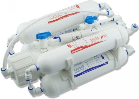 Rozbudowany, akwarystyczny filtr odwróconej osmozy z poszerzoną prefiltracją oraz zaworami zabezpieczającymi membranę przed wyschnięciem. Nowoczesny system firmy UST-M, gwarantujący czystą, miękką wodę, pozbawioną azotanów i azotynów, chloru i wielu innych zanieczyszczeń. Rozbudowany, akwarystyczny filtr odwróconej osmozy z poszerzoną prefiltracją oraz zaworami zabezpieczającymi filtr przed wyschnięciem. Nowoczesny system firmy UST-M, gwarantujący czystą, miękką wodę, pozbawioną azotanów i azotynów, chloru i wielu innych zanieczyszczeń. System odwróconej osmozy dla akwarystów ceniących sobie jakość. Główne cechy oferowanego filtra RO: podwójna prefiltracja sedymentacyjna (mechaniczna) podwójna prefiltracja węglowa zaworki zabezpieczające układ przed wyschnięciem najwyższej jakości membrana UST-M/Filmtec o standardowej wydajności 75 galonów na dobę (283 litry) Poliamidowe membrany stosowane w filtrach odwróconej osmozy nie są odporne na chlor. Z uwagi na ten fakt, przed membraną osmotyczną powinno montować się prefiltr (wkład) węglowy (z węglem aktywowanym), który usuwa z wody chlor. W oferowanym przez nas filtrze RO (Reverse Osmosis - Odwrócona Osmoza) zastosowano podwójny układ prefiltrów węglowych, co daje gwarancję usunięcia chloru w stopniu nieosiągalnym dla filtrów z pojedynczym wkładem węglowym. Wkłady z węglem aktywowanym działają skutecznie, jeżeli są zabezpieczone przed naniesionymi z wodą, nie rozpuszczonymi w niej zanieczyszczeniami sedymentacyjnymi (piach, muł, szlam etc.). W filtrze zastosowano wysokiej jakości wkład firmy UST-M o zdolności wychwytywania tego typu zanieczyszczeń do wielkości 5 mikronów. Gwarantuje to właściwą czystość wody dla pracy wkładów węglowych. Wkłady węglowe uwalniają poprodukcyjny pył podczas uruchamiania. Również w czasie filtrowania wody, niekiedy wydostają się z nich drobiny, które po przedostaniu się do obudowy membrany osmotycznej, mogą uszkodzić delikatną strukturę membrany. W tym filtrze zastosowano końcową filtrację sedymentacyjną, gwarantującą zatrzymanie wypłukiwanego z wkładów węglowych pyłu i drobin. Dzięki temu, membrana osmotyczna nie jest narażona na uszkodzenia mechaniczne a tym samym na utratę swoich zdolności separacji zanieczyszczeń. Membrany osmotyczne, bez względu na ich producenta, nie mogą wyschnąć. Sytuacja taka bardzo często przytrafia się akwarystom, którzy korzystają z filtra 1-2 razy w miesiącu, aby pobrać wodę do podmian w swoich zbiornikach. Wszystkie użyte w filtrze połączenia, wykonane są na oryginalnych szybkozłączkach firmy Organic z dodatkowym zabezpieczeniem spinkami blokującymi, dzięki czemu zminimalizowane jest prawdopodobieństwo ich rozłączenia się. Wkłady liniowe posiadają również wyjścia przystosowane do współpracy z szybkozłączkami. Podczas wymiany wkładów nie jest konieczny demontaż złączek (tak jak ma to miejsce w najtańszych chińskich filtrach) a jedynie ich wypięcie. Produkt wyprodukowany przez renomowaną polską firmę UST-M.Filtr dostarczamy jako kompletne urządzenie, gotowe do podpięcia do instalacji wodnej. Na kompletny filtr składają się następujące elementy: 1. filtr odwróconej osmozy RO5 2. membrana osmotyczna 75GPD 3. przyłącze wody 4. wężyk elastyczny 5. obejma odpływu wody do kanalizacji 6. instrukcja obsługi Zawory kulowe widoczne na zdjęciu nie są dostępne w opcji (+25 zł netto) NatiAnimals – Artykuły akwarystyczne, terrarystyczne i zoologiczne od renomowanych producentów Sklep internetowy NatiAnimals oferuje szeroki wybór artykułów akwarystycznych, terrarystycznych i zoologicznych od uznanych producentów, które zapewnią Twoim zwierzętom optymalne warunki życia oraz doskonałą pielęgnację. Artykuły akwarystyczne – Wszystko, czego potrzebujesz do swojego akwarium W NatiAnimals znajdziesz kompleksowe wyposażenie do akwarium, takie jak filtry, oświetlenie, pokarmy, rośliny oraz ozdoby, które zapewnią idealne warunki dla ryb i innych wodnych zwierząt. Nasze produkty pochodzą od renomowanych marek, gwarantujących najwyższą jakość. Akcesoria terrarystyczne – Zadbaj o swoje egzotyczne zwierzęta Oferujemy również szeroką gamę produktów terrarystycznych, w tym terraria, oświetlenie, systemy grzewcze oraz karmy dla gadów, płazów i innych egzotycznych zwierząt. Nasze akcesoria pomagają w stworzeniu zdrowego i bezpiecznego środowiska dla Twoich podopiecznych. Artykuły zoologiczne – Kompleksowa opieka nad zwierzętami domowymi W NatiAnimals znajdziesz wszystko, czego potrzebujesz dla swoich zwierząt domowych – od karm i suplementów, po akcesoria do pielęgnacji i zabawki. Dzięki produktom od renomowanych producentów możesz zapewnić swojemu pupilowi najlepszą opiekę. NatiAnimals – Twój zaufany sklep dla miłośników zwierząt Odkryj szeroką ofertę artykułów akwarystycznych, terrarystycznych i zoologicznych w NatiAnimals i zapewnij swoim zwierzętom komfort oraz zdrowie. Wybierz sprawdzone produkty od renomowanych marek, które pokochają zarówno Ty, jak i Twoje zwierzaki!