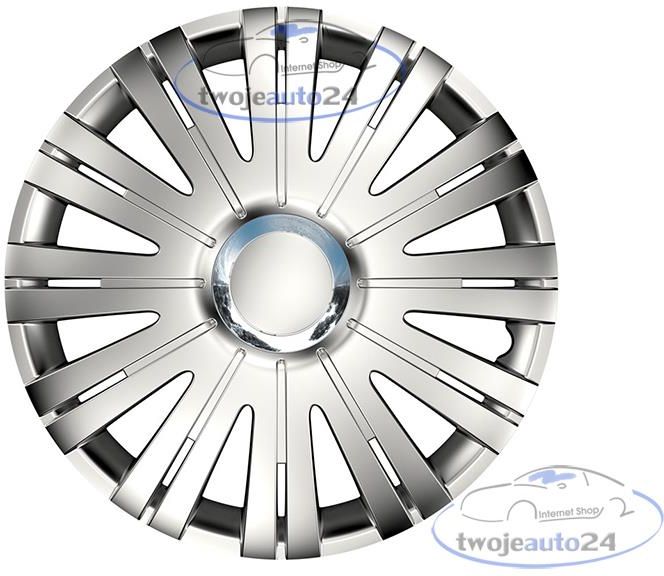 Kołpaki pasują do większości modeli samochodów wyposażonych w stalowe felgi. Dzięki możliwości regulacji obręczy można idealnie dopasować kołpak do felgi. Nie nadają się jedynie do felg wypukłych ZALETY: WYSOKA JAKOŚĆ zastosowanego tworzywa ABS WYTRZYMAŁOŚĆ – odporne na uderzenia i zmienne warunki atmosferyczne BEZPIECZEŃSTWO – zatrzaski z tworzywa sztucznego nie powodują uszkodzenia felg ŁATWOŚĆ MONTAŻU – bez użycia dodatkowych narzędzi EFEKTOWNY WYGLĄD Aby wybrać prawidłowy rozmiar kołpaka należy sprawdzić średnicę felgi – informację taką można odczytać na oponie. Liczba następująca po symbolu „R” oznacza średnicę opony. MONTAŻ: Zdejmij zbędne pokrywy z felgi i oczyść jej zewnętrzną stronę Ustaw stalowy pierścień rozprężny w pozycji z wcięciem pod wentyl i wciśnij go w gniazda łapek zaciskowych. Przyłóż kołpak do felgi, tak aby miejsce na wentyl w kołpaku pokrywało się z wentylem w feldze. Nałóż kołpak na dolną część felgi, podeprzyj kolanem, górne dwie łapki zaciskowe przyciśnij (uchyl) palcami od góry w dół kołpaka i jednocześnie wciśnij kołpak do wewnątrz rantu felgi. Dociśnij na całym obwodzie felgi.