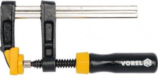 Ścisk stolarski Vorel 50x300mm 37104 Ścisk stolarski o 50x300 mm. Ścisk składa się z szczęk wykonanych ze specjalnego żeliwa oraz stabilnej stalowej szyny i śruby dociskowej. Ścisk stolarki służący do mocnego zaciskania materiałów podczas prac stolarskich. Ścisk do drewna wykonany z dobrej jakości materiałów. Drewniana rękojeść została dodatkowo polakierowana oraz wzmocniona metalową skuwką. Rozmiar 300x50 mm Głębokość 50 mm