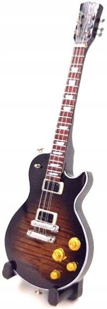 Mini gitara 15cm - BMG-042 - w stylu Slash Mini gitara 15cm - BMG-042 - w stylu Slash Mini gitara wykonana została ręcznie z drewna mahoniowego. Produkt kolekcjonerski. Gitarka nie jest zabawką. Nie gra. Informacje o produkcie: • Wymiary: 15,5 x 6 x 0,4 cm • Skala: 1:6 • Materiał: drewno mahoniowe • Kolor: czarny, biały, brązowy • W komplecie stojak plastikowo-metalowy do postawienia gitary Mini Gitara w stylu Slash doskonale sprawdzi się jako: • Prezent dla gitarzysty • Upominek dla fana rocka Uwaga! Sprzedający nie jest w jakikolwiek sposób związany z producentami prawdziwych instrumentów czy też z poszczególnymi artystami. Nazwy modeli czy też nazwiska artystów są przykładowe. Znane nazwiska służą wyłącznie do pokazania pewnego stylu uprawiania muzyki. Żaden z instrumentów nie jest wierną repliką co do proporcji, rozmiaru i designu.