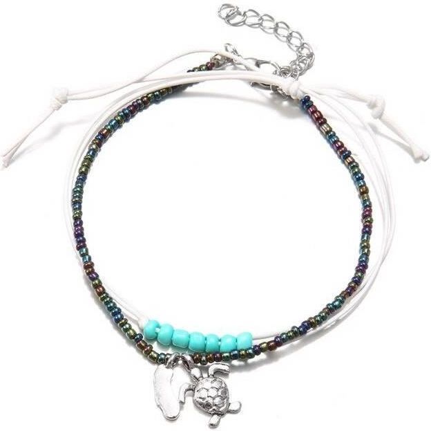 BRANSOLETKA NA NOGĘ KOSTKĘ KORALIKI ŻÓŁWIK B213 Rumia
