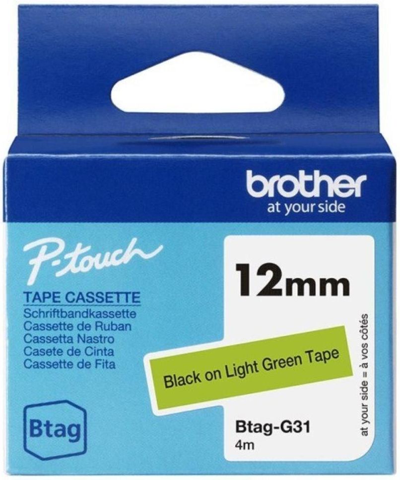Brother BTAG-G31 12 mm szerokości, 4 m długości Wysokiej jakości taśmy firmy Brother Zapewniają trwałe i czytelne etykiety Opis produktu  Brother BTAG-G31 Laminowana taśma BTAG-G31 firmy Brother, kompatybilna z drukarkami P-touch. Wszechstronna i czytelna, dzięki czarnemu nadrukowi na zielonym tle. Stanowi przydatne narządzenie do znakowania zarówno w domu, w biurze, jak i w innych miejscach. Kompatybilne z Brother P-touch PT-N10, PT-N20, PT-N25BT. Więcej informacji o produkcie  Brother BTAG-G31 Sprawdzi się zarówno w domu, biurze jak i w innym miejscu pracy. Laminowana taśma BTAG-G31 z czarnym nadrukiem na zielonym tle. Etykiety mają wszechstronne zastosowanie - od identyfikacji akt osobowych i szafek, przez pamięć USB aż po inne aktywa. Samoprzylepne etykiety są wytrzymałe temperaturowo, odporne na chemikalia, wodę, ścieranie. Mogą być zatem stosowane zarówno wewnątrz jak i na zewnątrz. Taśmy BTAG są łatwe i szybkie w montażu. Występują w wielu kolorach i rozmiarach, a także materiałach. Taśmy BTAG z pewnością sprostają Twoim oczekiwaniom w zakresie etykiet.