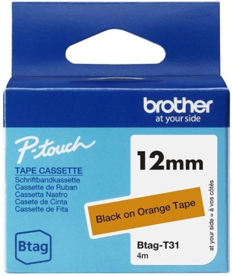 Brother BTAG-T31 12 mm szerokości, 4 m długości Wysokiej jakości taśmy firmy Brother Zapewniają trwałe i czytelne etykiety Opis produktu  Brother BTAG-T31 Laminowana taśma BTAG-T31 firmy Brother, kompatybilna z drukarkami P-touch. Wszechstronna i czytelna, dzięki czarnemu nadrukowi na pomarańczowym tle. Stanowi przydatne narządzenie do znakowania zarówno w domu, w biurze, jak i w innych miejscach. Kompatybilne z Brother P-touch PT-N10, PT-N20, PT-N25BT. Więcej informacji o produkcie  Brother BTAG-T31 Sprawdzi się zarówno w domu, biurze jak i w innym miejscu pracy. Laminowana taśma BTAG-T31 z czarnym nadrukiem na pomarańczowym tle. Etykiety mają wszechstronne zastosowanie - od identyfikacji akt osobowych i szafek, przez pamięć USB aż po inne aktywa. Samoprzylepne etykiety są wytrzymałe temperaturowo, odporne na chemikalia, wodę, ścieranie. Mogą być zatem stosowane zarówno wewnątrz jak i na zewnątrz. Taśmy BTAG są łatwe i szybkie w montażu. Występują w wielu kolorach i rozmiarach, a także materiałach. Taśmy BTAG z pewnością sprostają Twoim oczekiwaniom w zakresie etykiet.