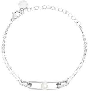 Srebrna bransoletka `Apolline` łączy elegancję z ponadczasową kobiecością. Delikatność połyskującej białej szklanej perły, inkrustowane kryształowe detale na dwóch ogniwach i owalna zawieszka dodają odrobiny luksusu. Idealnie wszechstronna, ta bransoletka bez wysiłku łączy się z każdą garderobą. Bransoletka `Apolline` wykonana jest ze stali szlachetnej, kryształu i białej szklanej perły.