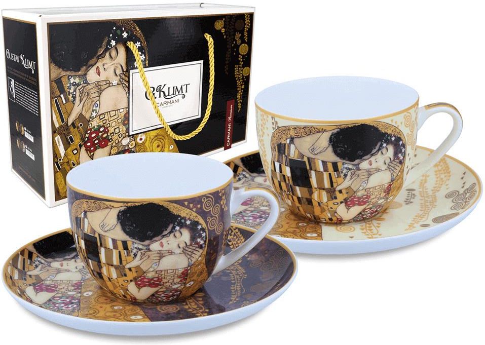 Carmani Komplet 2 filiżanek ze spodkami G Klimt Pocałunek Rumia