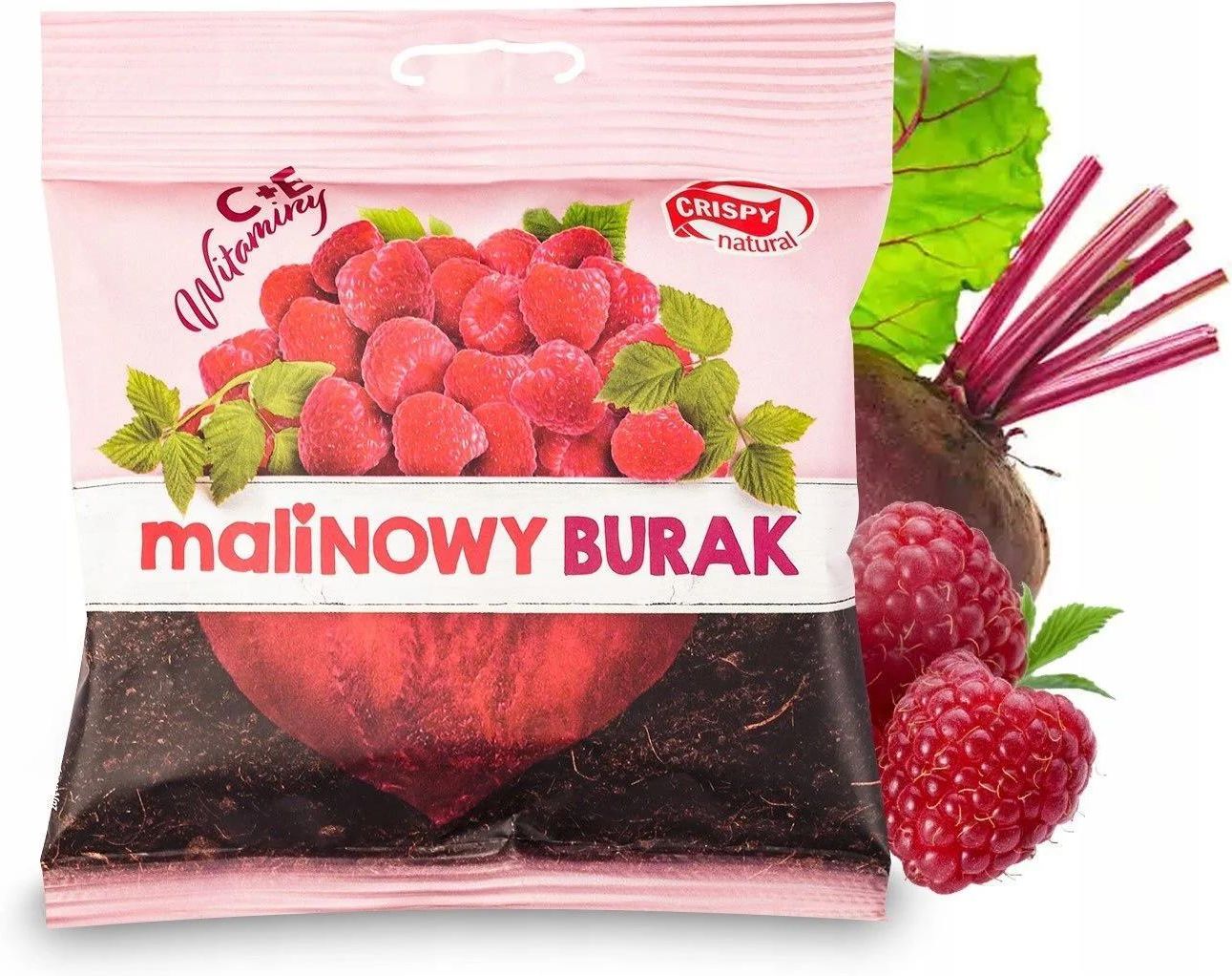 Burak Malinowy stanowi wyjątkowe połączenie chrupiących, suszonych plasterków buraka i soku malinowego. Łączy zalety warzywnego smakołyku z lekką nutą owocowej słodyczy dzięki czemu jest idealną alternatywą dla słodkich jak i słonych przekąsek. Ta pyszna i chrupka paczuszka buraków została wzbogacona o porcję WITAMIN C oraz E. Witamina C jest antyoksydantem i odgrywa kluczową rolę w funkcjonowaniu układu odpornościowego, a witamina E ma korzystny wpływ na zdrowie skóry działając jako naturalny nawilżacz poprawiając elastyczność i jędrność skóry. Pyszne świeże buraki, które wykorzystujemy do produkcji chipsów pochodzą od lokalnych, polskich dostawców.