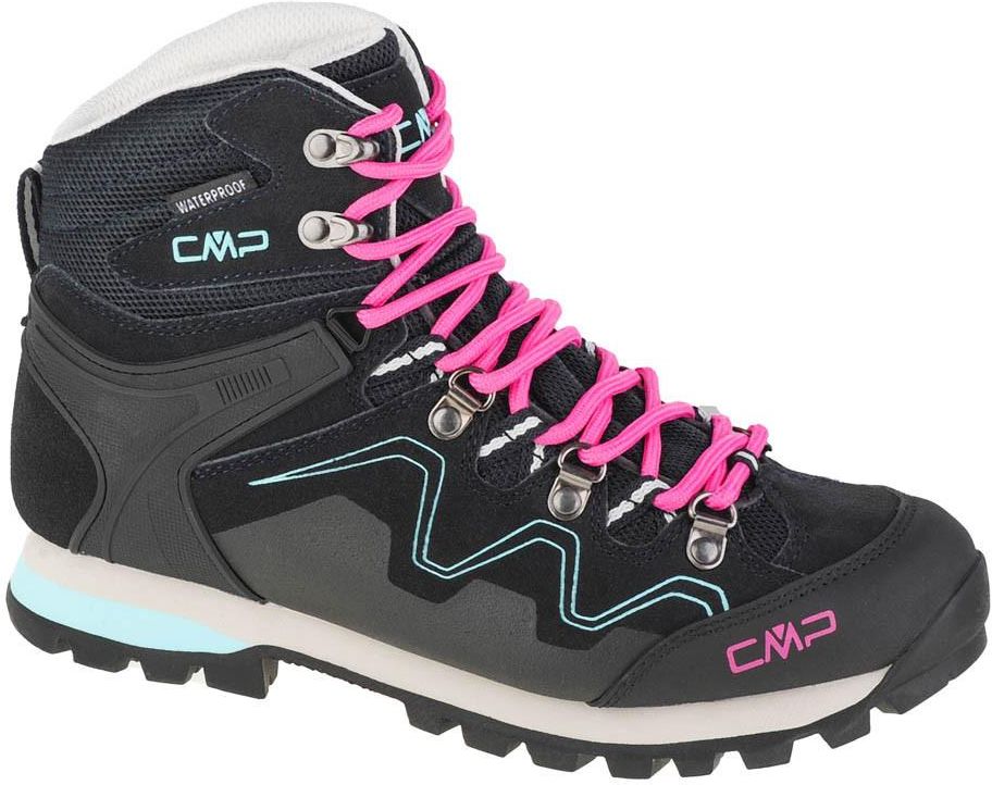 Buty turystyczne damskie CMP Athunis Mid WP to średniej wysokości model wykonany z trwałych materiałów, które zapewniają estetyczny design obuwia. Za suchość stóp podczas wędrówki w dni z niepewną pogodą odpowiada laminat ClimaProtect® oraz hydrofobowe wykończenie DWR.Cholewka butów w przeważającej części wykonana została z zamszowej skóry, która cechuje się wysoką wytrzymałością. Precyzyjne dopasowanie butów do stopy zapewni Ci klasyczny system sznurowania.Buty turystyczne wysokie damskie CMP Athunis Mid WP posiadają siatkowe wstawki na cholewce poprawiające przewiewność konstrukcji oraz wzmocnienia z tworzywa PU. Dzięki nim palce są zabezpieczone przed kontuzjami, a kostka zostanie dodatkowo ustabilizowana. Szerokie sznurowanie pozwoli uzyskać precyzyjne dopasowanie buta do stopy. Utrzymanie uczucia suchości blisko skóry stóp jest zadaniem siatkowej podszewki wykorzystującej membranę ClimaProtect® oferującej podwyższoną odporność na wodę. Jednocześnie wilgoć powstająca na skórze podczas wysiłku jest na bieżąco odprowadzana z dala od ciała.Przyjazny środowisku charakter obuwia podkreśla konstrukcja wolna od związków PFC. Buty turystyczne damskie CMP Athunis Mid WP posiadają wkładkę Hi-Poly Foam oferującą znakomitą absorpcję drgań oraz sprawne zarządzanie wilgocią. Amortyzująca pianka EVA znajdująca się w podeszwie środkowej również odpowiada za tłumienie drgań i wstrząsów podczas pokonywania wymagającego terenu. Niezrównaną przyczepność zarówno na suchym, jak i mokrym podłożu oferuje podeszwa zewnętrzna Vibram® XS Trek.Buty CMP Athunis Mid WP – najważniejsze cechy:Średniej wysokości cholewka wykonana ze skóry zamszowej;Wstawki z siatki na cholewce i wzmocnienia z PU;Siatkowa podszewka;Membrana ClimaProtect® zapewniająca dobry poziom wodoodporności i oddychalności;Hydrofobowa impregnacja zabezpiecza przed wilgocią;Podeszwa środkowa z pianki EVA;Podeszwa zewnętrzna Vibram® XS Trek Tsavo 1206;Wkładka Hi-Poly Foam;Konstrukcja wolna od PFC.
