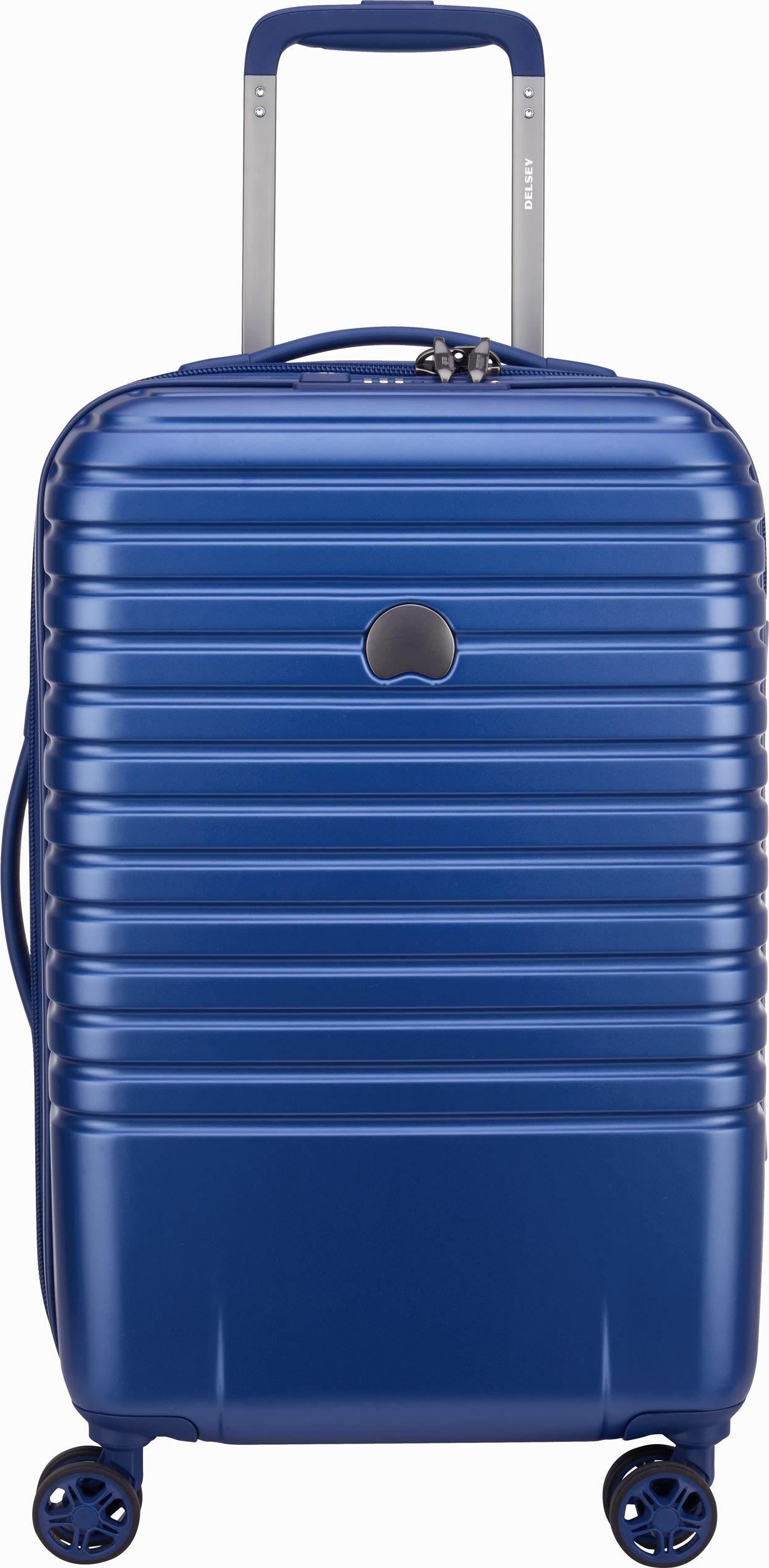 Niebieska walizka kabinowa CAUMARTIN PLUS 55 cm, to idealny wybór dla osób poszukujących eleganckiej, pojemnej i funkcjonalnej walizki. Świetnie zaprojektowana walizka z równie przemyślanym wnętrzem, które ma praktyczne przedziały i kieszenie zapewniające komfort pakowania. Całość spina niezawodna ochrona bagażu, jaką daje zamek TSA, dzięki czemu zawartość walizki nie ulegnie uszkodzeniu podczas transportu. Kolekcja CAUMARTIN PLUS to bezpieczne, wygodne i wytrzymałe walizki podróżne z optymalnie zaprojektowaną przestrzenią wewnętrzną. Jest to mała, ale bardzo odporna na uszkodzenia walizka - wykonana jest w 100% z polipropylenu - materiału najbardziej odpornego na uszkodzenia. Podróżuj w najlepszym towarzystwie eleganckiej walizki od Delsey Paris. Dodatkowe funkcjonalności: Optymalnie zaprojektowane wnętrze, wyposażone w przegródki i kieszenie 4 ciche podwójne obrotowe koła, które dają doskonałą stabilność w pionie i ułatwiają poruszanie się w tłumie lub po płycie lotniska Wodoodporna powłoka i zapięcie Zintegrowany uchwyt boczny + wpuszczany górny uchwyt Optymalne bezpieczeństwo bagażu: Zamek TSA 5-letnia gwarancja na wady materiałowe i wykończeniowe