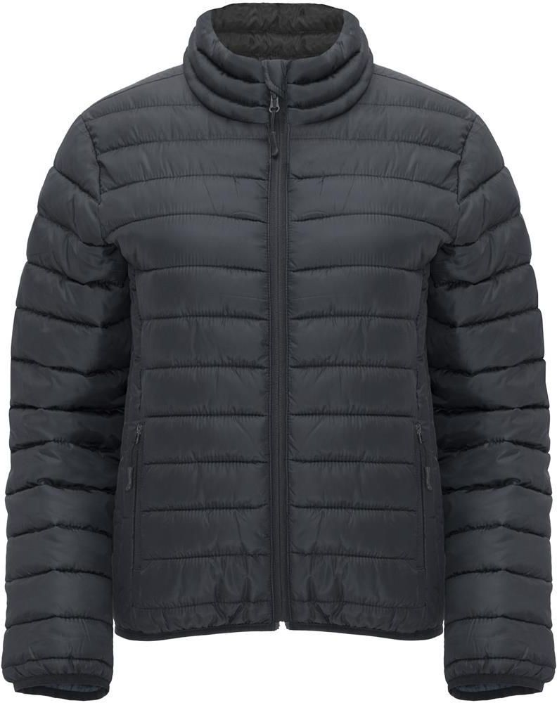 Damska kurtka pikowana z wypełnieniem przypominającym w dotyku pierze. Odwrócone zamki błyskawiczne z dopasowanym ochraniaczem podbródka i ściągaczem. Dwie przednie kieszenie z zamkami błyskawicznymi. Dopasowana elastyczna lamówka w kołnierzu, mankietach i u dołu. Kontrastowa podszewka wewnętrzna. W zestawie torba transportowa. Lekka i składana odzież. Dopasowany krój. Usuwalna metka. Wodoodporność. Wiatroszczelna.