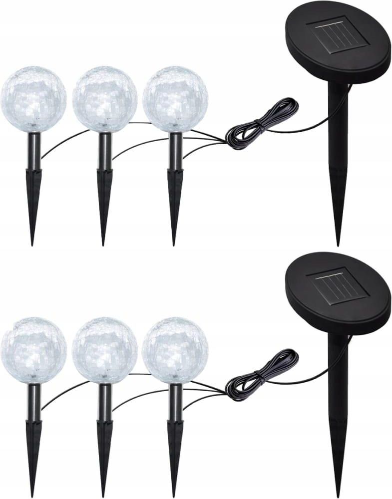 Lampy ogrodowe LED, 6 szt., z panelami solarnymi i szpikulcami Te zestawy lamp solarnych są idealnym dodatkiem do ogrodów, patio, ścieżek, podwórek i balkonów. Lampy LED w kształcie kul są dostarczane ze szpikulcami do wbicia w ziemię i panelem słonecznym. Wystarczy wykonać prostą i łatwą instalację. Każda kula solarna wykonana jest z trwałego tworzywa sztucznego, które zapewnia lata użytkowania. Światło włącza się automatycznie, gdy robi się ciemno. Długość świecenia zależy od warunków pogodowych. Zazwyczaj lampy mogą świecić 8 godzin po ekspozycji na promienie słoneczne przez 3 godziny. Zasilane przez energię słoneczną lampy kuliste służą do zastąpienia tradycyjnych żarówek, co pomaga chronić środowisko. Poza tym nie musisz płacić rachunków za prąd przez nie zużyty, ponieważ są one ładowane energią słoneczną. To naprawdę jednorazowa inwestycja, która przynosi trwałe zyski. 6 lamp LED w kształcie kul i panel słoneczny ze szpikulcem do wbicia w ziemię w zestawie Materiał: szkło, odporne na promieniowanie UV 1 x LED 0,1 W (zimne białe światło) na lampę Średnica kuli: 9,5 cm W zestawie 1 fabrycznie zamontowany akumulator AA 1,2 V / NI-MH 600 mAh Źródło zasilania: promienie słoneczne