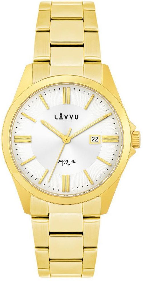 Lavvu LWM0302 Zegarek Lavvu LWM0302 to nie tylko praktyczne narzędzie do pomiaru czasu, ale również istotny element stylu, który podkreśla osobowość i indywidualność jego właściciela. Model ten harmonijnie łączy funkcjonalność z estetyką, oferując elegancki wygląd oraz precyzyjne zarządzanie czasem dzięki dodatkowej funkcji stopera. Wysokiej jakości mechanizm Citizen Miyota GM12 zapewnia niezawodność i dokładność, co czyni go idealnym wyborem zarówno do codziennych, jak i formalnych stylizacji. Wysoka jakość wykonania Koperta zegarka została wykonana z najwyższej jakości złota, co nadaje mu luksusowego charakteru. Okrągły kształt koperty, dostosowany do większości męskich nadgarstków, zapewnia komfort noszenia. Szerokość paska wynosząca 22 mm współgra z całością, tworząc elegancką sylwetkę. Zastosowanie złota w biżuterii zegarka sprawia, że jest on doskonałym wyborem na formalne okazje, a także na co dzień. Ochrona i funkcjonalność Ochronę tarczy zapewnia szafirowe szkło, które słynie z wyjątkowej odporności na zarysowania i uszkodzenia. Dzięki temu można cieszyć się niezmiennie pięknym wyglądem zegarka przez długi czas, nie martwiąc się o codzienne zarysowania. Przejrzystość szafirowego szkła gwarantuje doskonałą widoczność, co jest kluczowe, gdy chcemy szybko sprawdzić czas. Dodatkowo, zegarek LWM0302 jest wodoodporny na poziomie 10 ATM, co oznacza, że można go nosić podczas kąpieli czy pływania. Kluczowe cechy zegarka Warto zwrócić uwagę na kluczowe cechy tego zegarka, które przyciągają uwagę i czynią go wyjątkowym: wysoka jakość mechanizmu Citizen Miyota GM12, szafirowe szkło odporne na zarysowania, wodoodporność na poziomie 10 ATM, klasyczne wzornictwo z elementami skandynawskiego minimalizmu, praktyczny datownik, estetyczna bransoleta wykonana z wysokiej jakości złota. Styl i design Styl i design zegarka są jego niewątpliwymi atutami. Klasyczne wzornictwo z elementami skandynawskiego minimalizmu sprawia, że model LWM0302 idealnie wkomponuje się w różnorodne stylizacje. Jego elegancki złoty kolor oraz biały kolor tarczy harmonijnie współgrają, tworząc efektowną całość, która doskonale pasuje zarówno do garnituru, jak i do casualowych zestawów z jeansami i koszulą.