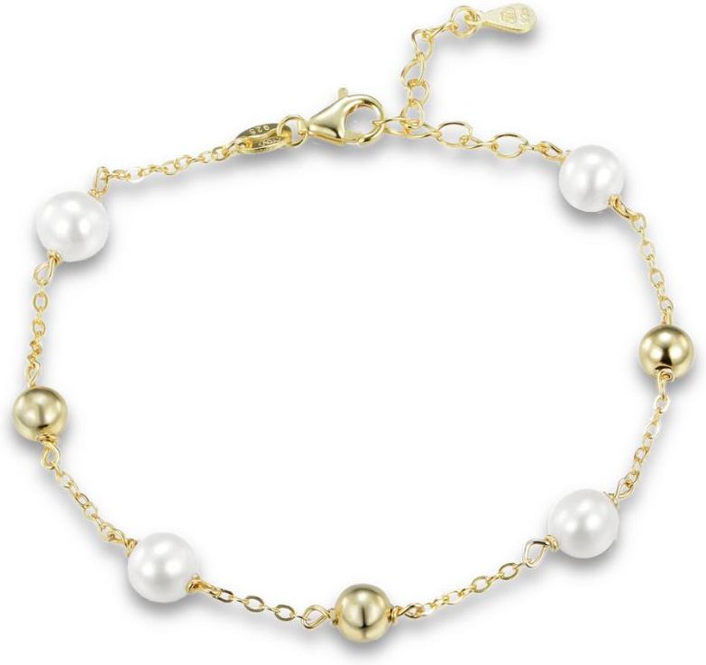 Minet Pozłacana Srebrna Bransoletka Z Kulkami I Naturalnymi Perłami Rumia