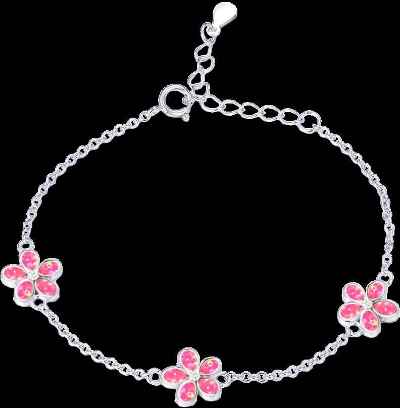 Minet Srebrna bransoletka KWIATY z różowymi opalami Rumia