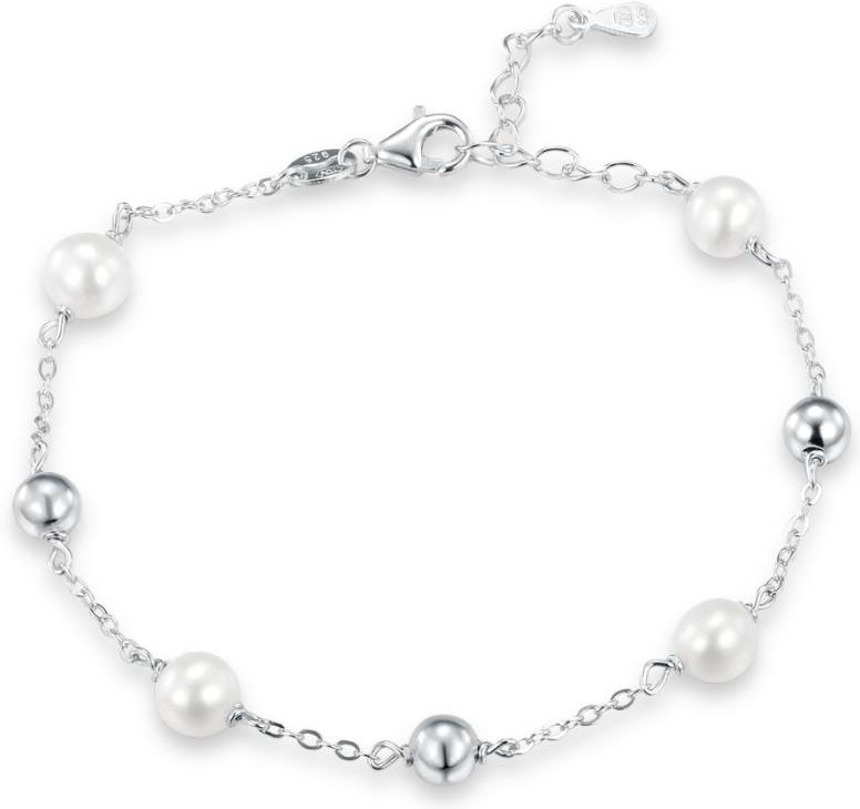 MINET Srebrna bransoletka z kulkami i naturalnymi perłami Stan: Nowy Czystość:: Ag 925/1000 Wykończenie powierzchni:: rodowane Kamień:: naturalna perła Typ produktu:: bransoletka Kolor:: srebrny, biały Materiał:: srebro Marka:: MINET Długość łańcuszka (cm): 19 Waga (g): 2,9 - perły słodkowodne -