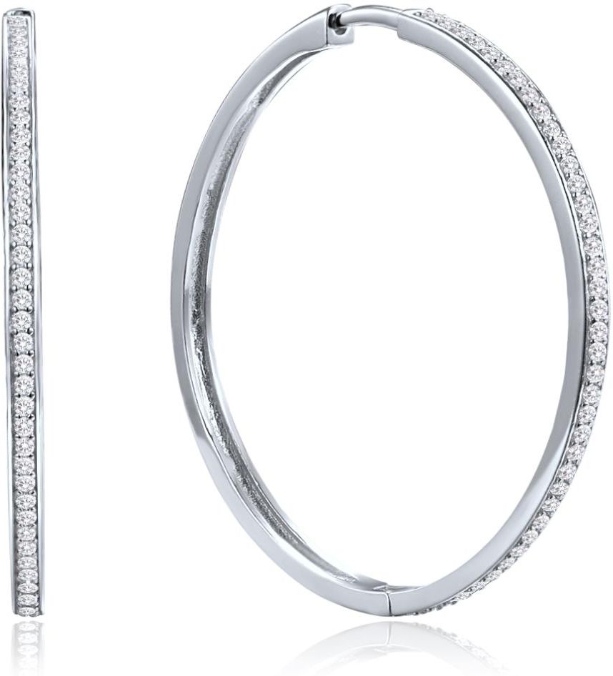 MINET Srebrne kolczyki kwadratowe koła 4 cm z białymi cyrkoniami Rumia