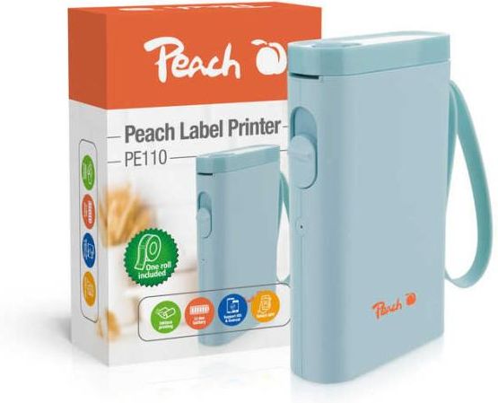 Peach PE110. Technologia druku: bezpośrednio termiczny, Maksymalna rozdzielczość: 203 x 203 DPI, Prędkość druku: 60 mm/s. Technologia łączności: Bezprzewodowy. Rodzaj baterii: Wbudowana bateria. Kolor produktu: Niebieski