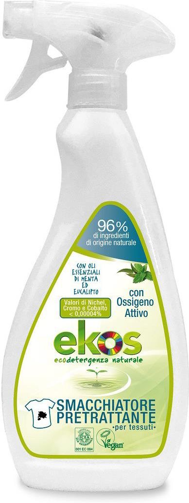 Składniki: INCI: Aqua, Hydrogen Peroxide, Sodium Coceth Sulfate, Aloe Barbadensis Leaf Juice*, Fatty Alcohol C10-C16 8 OE/PO, Disodium Etidronate, Lactic Acid, Mentha Arvensis Leaf Oil*, Eucalyptus Globulus Leaf Oil*. * Z rolnictwa ekologicznego. Właściwości i działanie: Odplamiacz Pierpaoli Ekos …