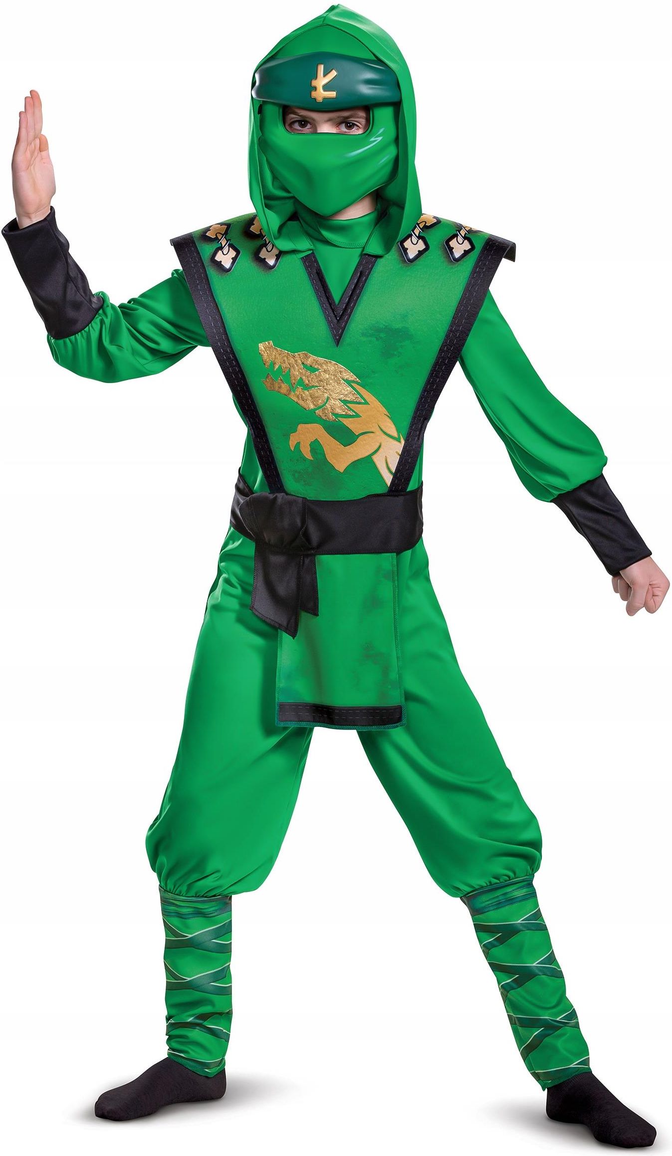 Graj jako dzielny Lloyd w tym luksusowym kostiumie Legacy Ninjago™ dla dzieci. Ten luksusowy kostium Lloyda dla dzieci jest oficjalnie licencjonowany przez LEGACY Ninjago® LEGO® . Obejmuje kombinezon, maskę i kaptur. Strój jest w całości zielony , aby pozostać wiernym postaci Lloys , na przodzie tuniki obecny jest motyw złotego smoka. Ten ostatni ma czarne wypustki na rękawach i tunice. Wystarczy założyć maskę i kaptur, aby ukryć twarz jak prawdziwy Ninjago. Możesz wyposażyć się w dwie szable, aby wcielić się w postać Lloyda i uzupełnić swój kostium LEGACY deluxe Ninjago® - LEGO® dla dzieci .Dołączone akcesoria: Kombinezon Kaptur Maska. Materiał: 100% poliester. Konserwacja: Pranie ręczne. Przewodnik po rozmiarach Obwód klatki piersiowej w cm 5 - 6 lat (109 - 126 cm) 66/67 7 - 8 lat (124 - 136 cm) 67/73 10 - 12 lat (137 - 149cm) 71/77 Obwód talii w cm 5 - 6 lat (109 - 126 cm) 58/60 7 - 8 lat (124 - 136 cm) 61/66 10 - 12 lat (137 - 149cm) 66/69 Obwód bioder w cm 5 - 6 lat (109 - 126 cm) 66/68 7 - 8 lat (124 - 136 cm) 69/77 10 - 12 lat (137 - 149cm) 76/81 Przewodnik po rozmiarach