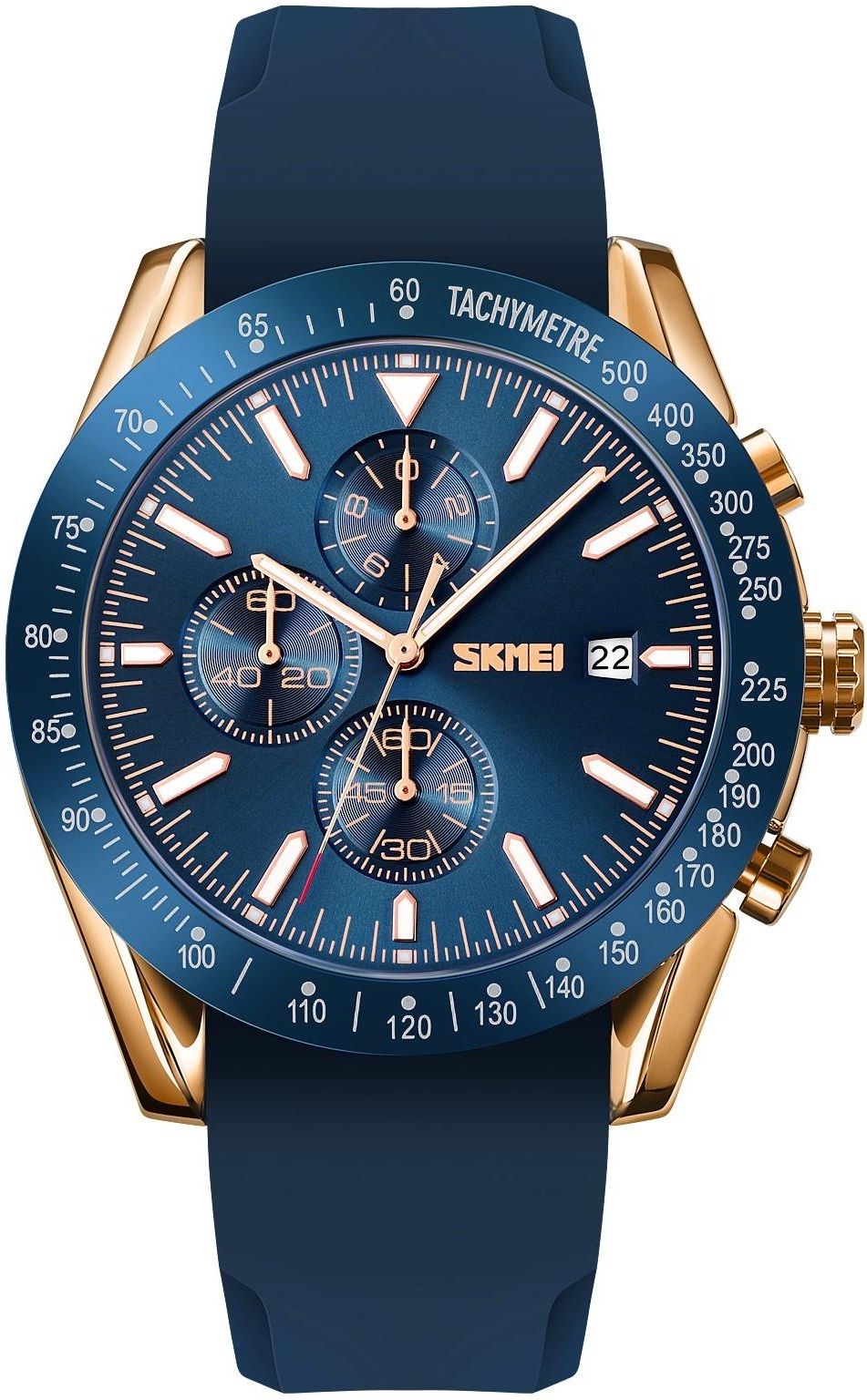 Zegarek Męski Skmei 9253PRGBU + BOX Zegarek Skmei 9253 w wersji na silikonowym pasku nawiązuje do estetyki ekskluzywnych modeli sportowych marek, takich jak TAG Heuer Carrera czy Rolex Daytona. Jego elegancki wygląd, podkreślony wyrazistym bezlem i tarczą z subtarczami emanuje profesjonalnym, …