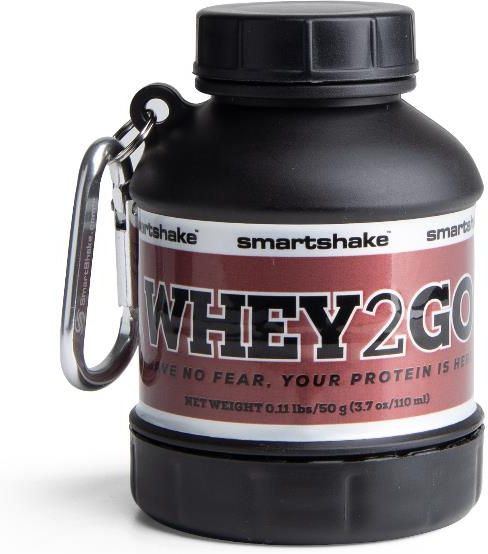 Carry supplements the Smart way Sometimes bigger isn't better. Whey2Go is the smart way to carry your supplements around. Smart storage and funnel all in one taking the mess out of the mix. Long story short, our innovative Smartshake design philosophy brings you the best portable supplement key-chain there is. So get smart, go small and stay on the go. The Funnel is easy to fill. Unscrew the bottom so you can easily fill up with your favorite supplement. Leak-proof. The compartment has a leak-proof lid both on the top and the bottom. Portable storage with clip. Great travel compartment for the active lifestyle, ideal for nutritional daily packs. Will store up to 2 servings.