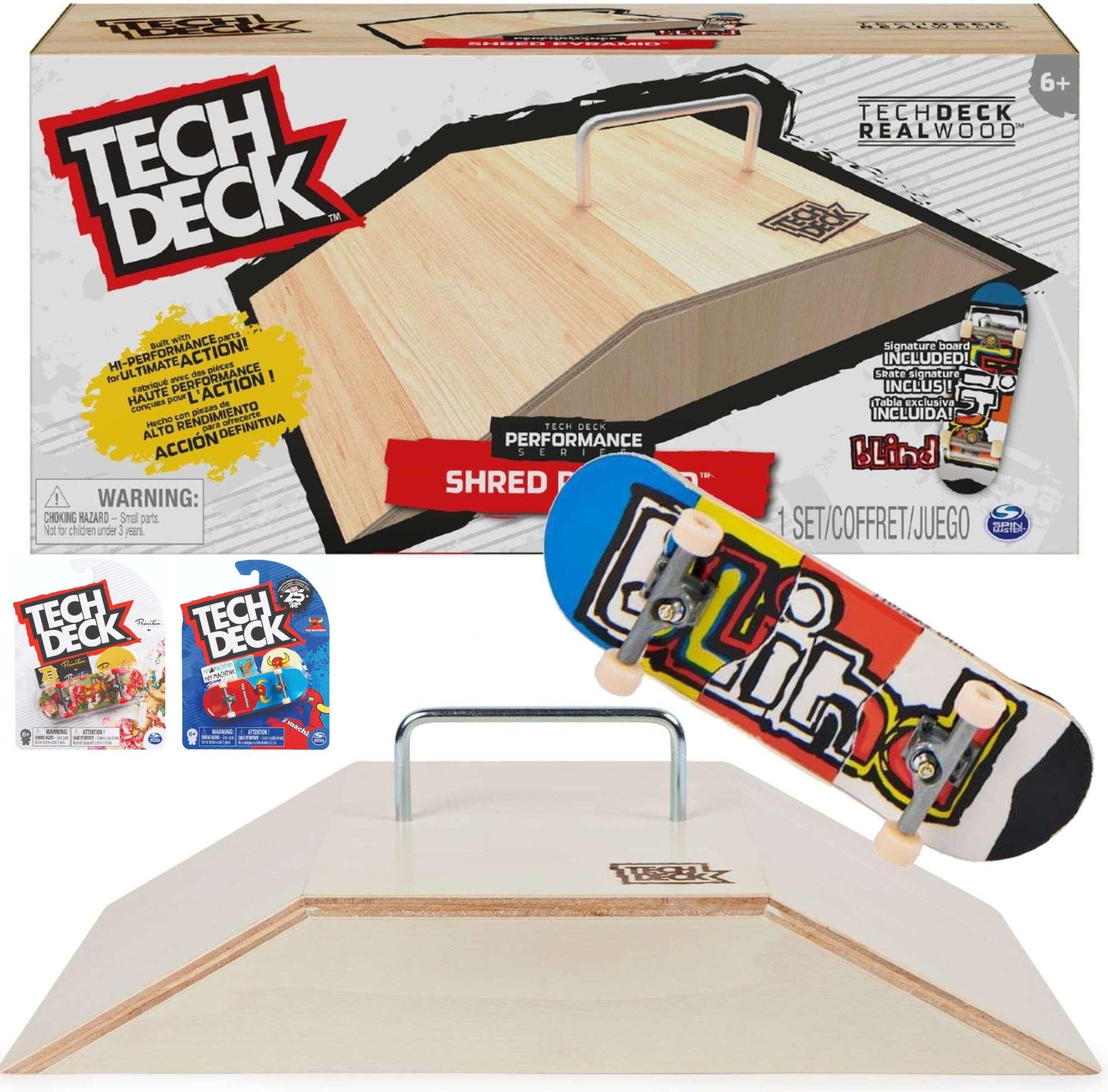 Zestaw Tech Deck Shred Pyramid umożliwia złożenie drewnianej rampy dla deskorolek (fingerboard). Deskorolki po złożeniu dają mnóstwo zabawy podczas wykonywania trików palcami. Dodatkowo trenują koordynację naszych palców.
