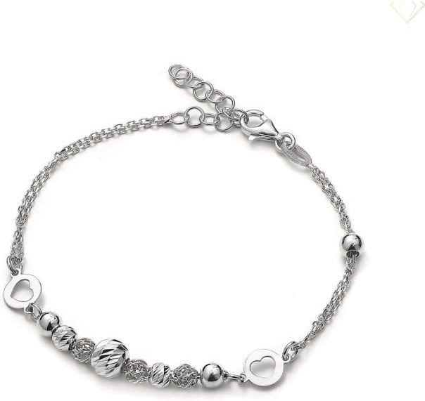 Ta srebrna bransoletka urzeka swoją delikatnością i szlachetnym blaskiem rodowanego wykończenia. Wykonana ze srebra próby 925, stanowi połączenie klasycznej elegancji z nowoczesnym stylem. Jej wyjątkowy charakter tworzą zawieszki w kształcie serduszek oraz drobne kulki o różnych fakturach – gładkie, ażurowe i skręcane – które subtelnie odbijają światło, nadając całości wyjątkowej głębi i blasku. Podwójny łańcuszek dodaje lekkości i finezji, a rodowane wykończenie chroni powierzchnię przed ciemnieniem, zachowując idealny połysk przez lata. To biżuteria, która podkreśli naturalny wdzięk i styl każdej kobiety, zarówno na co dzień, jak i przy wyjątkowych okazjach. Regulowane zapięcie typu karabińczyk gwarantuje komfort i idealne dopasowanie. Bransoletka z serduszkami to symbol subtelności i uczuć – perfekcyjny wybór na prezent, który zawsze będzie przypominał o bliskości. Biżuteria rodowana zachowuje swój piękny blask i kolor. Wyglądem imituje białe złoto, co dodaje biżuterii namiastkę luksusu. Kolekcja bransoletek jest idealna dla kobiet, które lubią dodatki. Skompletuj swój zestaw różnorodnych bransoletek! Zabłyśnij z biżuterią Susetti!