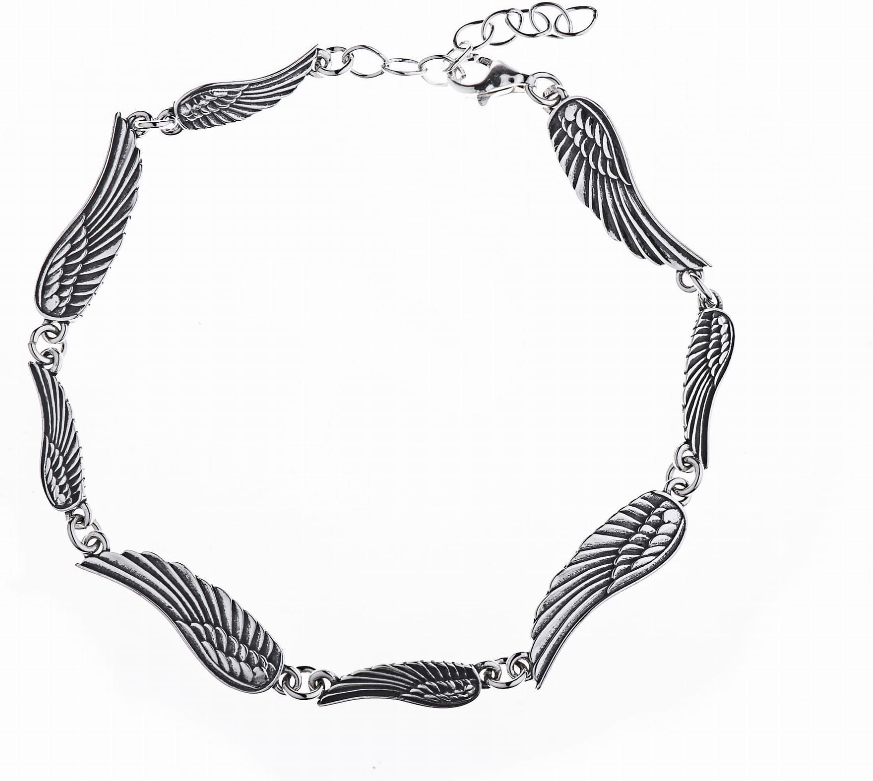 Susetti Srebrna Bransoletka Oksydowana Skrzydła Anioła Rumia
