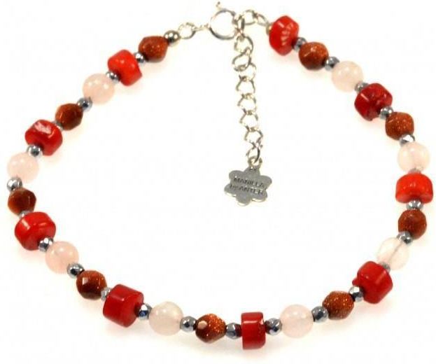 Bransoletka wykonana ze srebra próby 925 , pozłacanego 24 karatowym złotem Kamień: Koral i Piasek Pustyni Rozmiar kamienia: 3mm / 4mm Długość: 17,5 cm + przedłużka do 19,5 cm