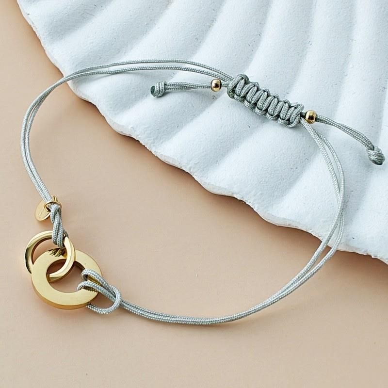 Upominkarnia Bransoletka na rękę stal chirurgiczna pozłacana 14k złotem, szara na sznurku regulowana BST1555 Rumia