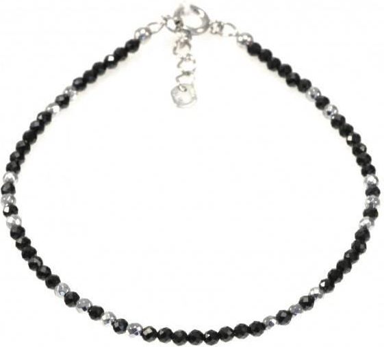 Bransoletka wykonana ze srebra próby 925, pozłacanego 24 karatowym złotem. Kamień: Turmalin+ Hematyt Rozmiar kamienia: 2mm Długość: 17,5 cm + przedłużka do 19,5 cm Zapięcie: klasyczne (federing) Biżuteria ręcznie wykonana, produkt Polski.