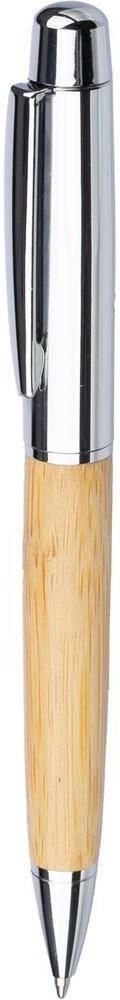 Długopis przekręcany z bambusowym trzonem, posiada niebieski wkład, bambusowa tuba chroniąca przed zniszczeniem w komplecie, produkt wykonany ze stali nierdzewnej