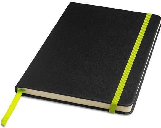 Notes A5 w twardej oprawie z kolorową gumką oraz materiałową zakładką. Zawiera 80 gładkich kartek w kolorze kremowym. Papier 80 g/m².