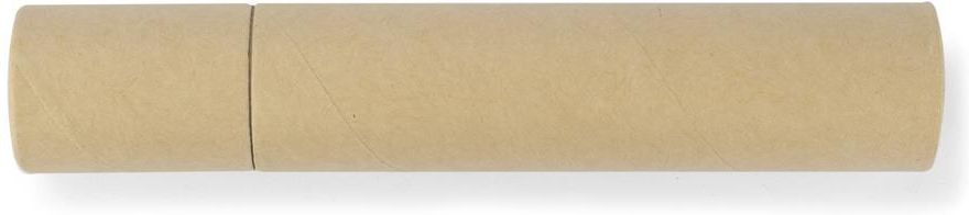 Piórnik ekologiczny wykonany z kraftowego papieru w kształcie tuby. W zestawie: papierowy długopis, drewniany: ołówek, temperówka, linijka oraz gumka do mazania.