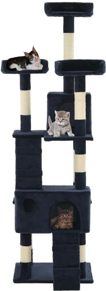 Podaruj swoim kocim przyjaciołom odrobinę luksusu dzięki naszemu bogato wyposażonemu drapakowi! To wielopoziomowe centrum zabaw dla kotów z solidną konstrukcją pokrytą miękkim, wygodnym pluszem to idealne schronienie dla Twoich zwierzaków, w którym będą mogły drapać, wspinać się, leżeć, chować się i odpoczywać. Twoi koci przyjaciele mogą naostrzyć swoje pazury na słupkach owiniętych w sizalowe sznurki, co zapewnia zdrowy upust ich drapieżnych instynktów. Będą także urządzać sobie gonitwy, przeskakując w górę i w dół po tym centrum zabaw. Kiedy będą miały tego dość, pokochają odpoczynek na wyższych platformach, z których jest lepszy widok. Mogą również chować się i ucinać sobie drzemki w przytulnych domkach. Dzięki wszystkim tym atrakcjom plac zabaw dla kotów stanie się ulubionym miejscem Twoich futrzaków! Drapak jest łatwy w montażu. Kolor: niebieski Materiał: rama z płyty wiórowej + miękki plusz + sizalowy sznurek Wymiary całkowite: 50 x 50 x 170 cm (dł. x szer. x wys.) Wymiary większego domku: 45 x 27 x 25 cm (dł. x szer. x wys.) Wymiary mniejszego domku: 27 x 27 x 25 cm (dł. x szer. x wys.) Średnica słupka: 7 cm Z 2 domkami, 2 rampami, platformami widokowymi i strefami relaksu Łatwy montaż Materiał: Poliester: 100%