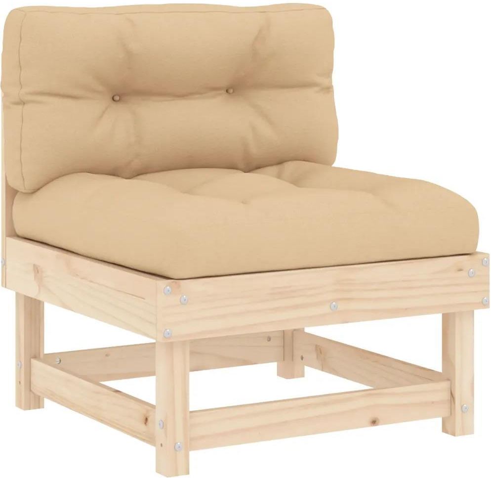 Ta drewniana sofa środkowa, wyróżniająca się konstrukcją z desek i miękkimi poduszkami, będzie doskonałym dodatkiem do Twojego ogrodu, patio lub tarasu, gdzie pozwoli spędzać przyjemnie czas z rodziną lub przyjaciółmi. Lite drewno sosnowe: lite drewno to piękny, naturalny materiał. Drewno sosnowe ma prostą strukturę słojów, a sęki nadają mu wyjątkowy, rustykalny wygląd. Solidna i stabilna rama: drewniana rama sprawia, że to siedzisko ogrodowe jest solidne, stabilne i odpowiednie do codziennego użytkowania na zewnątrz. Komfort siedzenia: oparcie zapewnia większą wygodę siedzenia na sofie ogrodowej. Co więcej, grubo wypełnione poduszki oferują dodatkowy komfort. Modułowa konstrukcja: sofę modułową można swobodnie przestawiać i zestawiać z innymi modułami dostępnymi w sklepie internetowym, aby stworzyć swoją własną aranżację zestawu wypoczynkowego do ogrodu! Warto wiedzieć: Aby utrzymać meble ogrodowe w dobrej kondycji, zalecamy zabezpieczenie ich wodoodpornym pokrowcem. Środkowa sofa: Materiał: lite drewno sosnowe (surowe) Materiał wykonania listew: sklejka Wymiary: 61 x 60,5 x 62 cm (dł. x szer. x wys.) Maksymalne obciążenie: 110 kg Poduszka: Kolor: beżowy Materiał pokrycia: tkanina Oxford Materiał wypełnienia: bawełna PP Wymiary poduszki na siedzisko: 60 x 60 x 12 cm (dł. x szer. x gr.) Wymiary poduszki na oparcie: 60 x 32 x 12 cm (dł. x szer. x gr.) Wymagany montaż: tak Zawartość przesyłki: 1 x sofa środkowa 1 x poduszka na siedzisko 1 x poduszka na oparcie