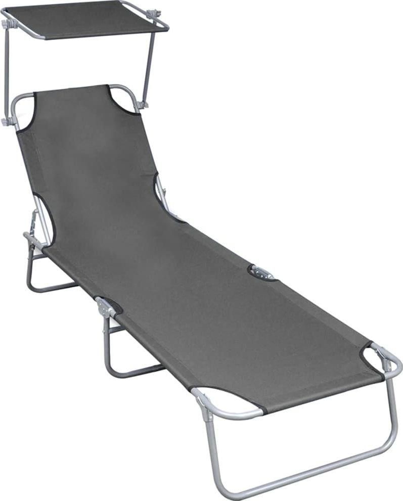 Vidaxl Składany Leżak Z Zadaszeniem Szary Aluminium Rumia