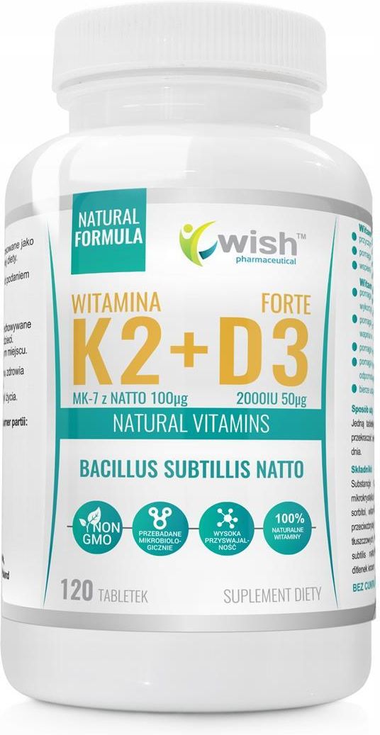 Opinie Wish Pharmaceutical Witamina K2 MK7 z Natto 100mcg + D3 2000IU 50mcg 120 tabl. Rumia