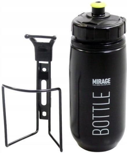 Bidon wraz z koszykiem firmy Mirage. Bidon z szerokim wlewem, co ułatwia napełnienie lub umycie, W zestawie śruby do montażu, Pojemność: 600 ml.