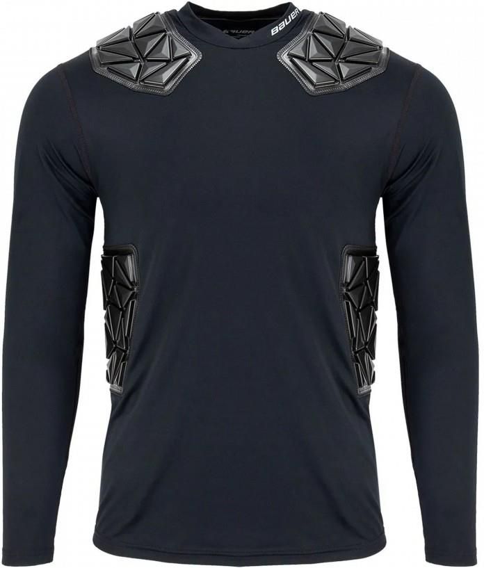 Koszula bramkarska ribano Bauer Elite Sr Technologia FleXorb zapewnia doskonałą amortyzację uderzeń, zwiększoną mobilność i daje możliwość prania Ochrona przed uderzeniami dla bramkarza w okolicach obojczyka i żeber Wstawki pod pachami zwiększające mobilność Płaskie szwy, minimalizują otarcia Pętelka na wewnętrznej stronie karku