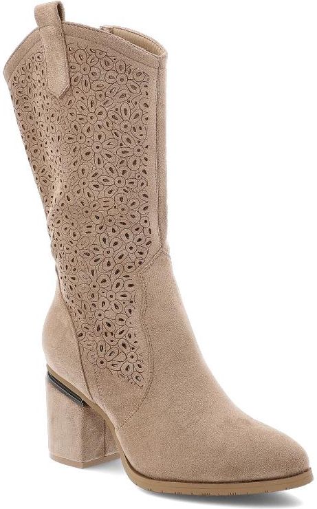 Beżowe Kozaki S.Barski Eleganckie Obuwie Damskie