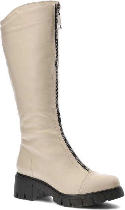 Beżowe Kozaki Simen Modne Wygodne Buty Damskie Rybnik