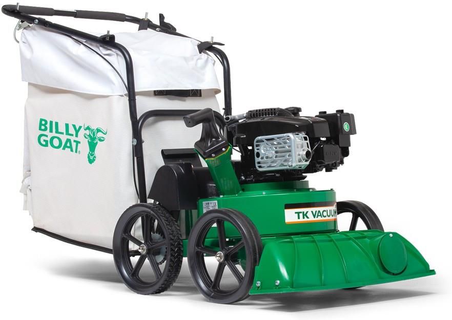 Główne zalety amerykańskiego odkurzacza do liści z rozdrabniaczem Billy Goat TKV601SP EU: Amerykański silnik użytkowy Briggs&Stratton 850E z systemem lekkiego rozruchu, o wysokim momencie obrotowym 11.5Nm; Możliwość rozdrabniania gałęzi do 5cm średnicy dzięki dedykowanemu ostrzu z wysokogatunkowej stali, osadzonemu na stalowym wirniku zasysającym; Bezawaryjny napęd General Transmissions z wyjątkowo wytrzymałą, podwójną przekładnią łańcuchową (po jednym łańcuchu napędowym na kole lewym i prawym); Solidny, stalowy, 5-łopatkowy wirnik z ząbkowanymi krawędziami o wydajności zasysania do 2890m³/h, który nie tylko rozdrobni i zmniejszy objętość materiału wpadającego do kosza ale i z łatwością poradzi sobie z wszelkiego typu odpadami ogrodowymi, w tym: suche i mokre liście, kasztany, żołędzie, puszki oraz szklane butelki do pojemności 350ml; Pojemny, 151-litrowy kosz z pokrywą anty-kurzową i wygodnym, klamrowym systemem opróżniania; Płynna regulacja wysokości ssawy przez pokrętło ulokowane bezpośrednio za silnikiem; Idealne osadzenie środka ciężkości i tym samym doskonałe wyważenie maszyny, które w połączeniu z dużymi kołami prowadzącymi i szerokim uchwytem zapewnia wygodne prowadzenie i manewrowanie odkurzaczem Billy Goat TKV601SP Bogaty wachlarz wyposażenia dodatkowego: rura saąca, kółka podporowe, pokrywa przeciwdeszczowa, kołnierz zabezpieczający, sito redukujące objętość liści 12:1.
