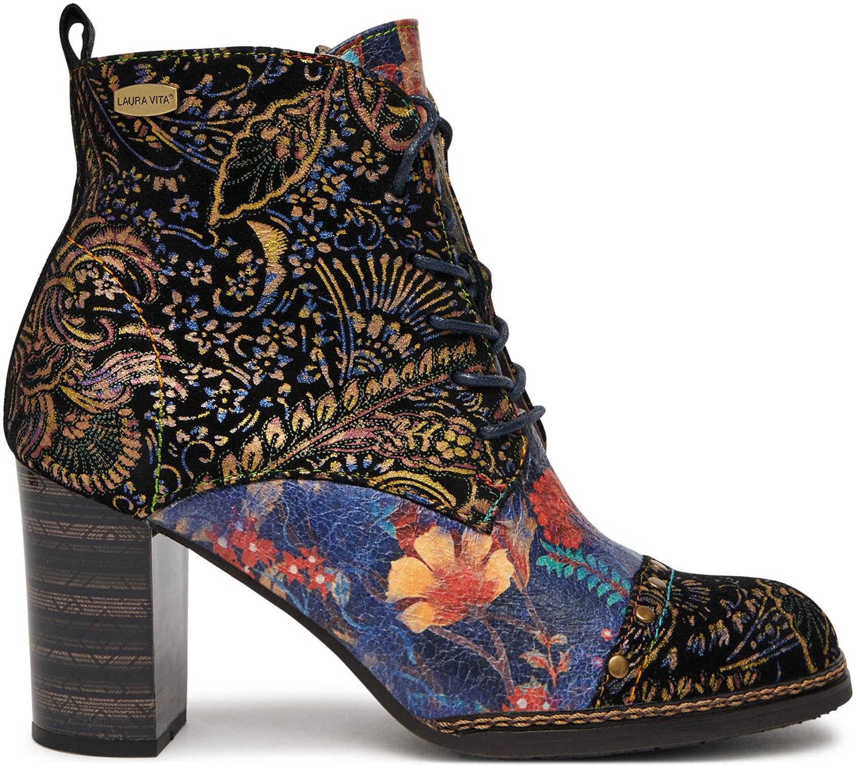 Podkreśl swój unikalny styl dzięki botkom marki Laura Vita! Wykonane z najwyższej jakości skóry naturalnej, zapewniają nie tylko trwałość, ale także komfort użytkowania. Wkładka ze skóry sprawia, że każde kroki są przyjemnością, idealnie dopasowując się do kształtu stopy. Słupek dodaje elegancji i stabilności, co czyni je świetnym wyborem zarówno na co dzień, jak i na wyjątkowe okazje. Te damskie botki to połączenie klasyki z nowoczesnym designem – wybór, który zachwyca wygodą i stylem!