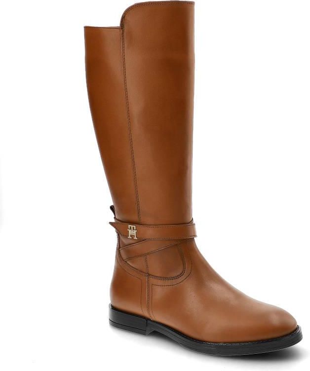 Brązowe Kozaki Damskie Tommy Hilfiger Eleganckie Skórzane Buty