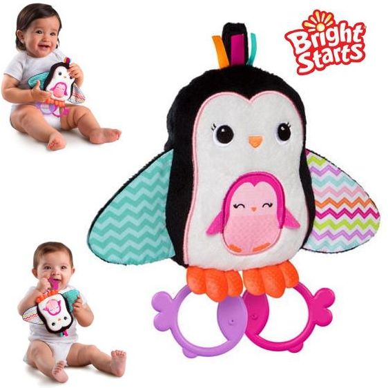 Pluszowy pingwinek od Bright Stars z chęcią zostanie przyjacielem Twojej pociechy! Niesamowicie uroczy wygląd i staranne wykonanie sprawiają, że zabawka jest bezpieczna dla dzieci od 6 miesiąca życia. Pingwinek wykonany jest z materiałów o różnych fakturach będzie rozwijał zmysł dotyku, a kolory będą stymulowały zmysł wzroku. Nóżki maskotki pełnią również funkcje gryzaków, co okazuje się bardzo przydatne w okresie ząbkowania.